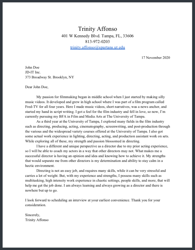 Trinity Cover Letter