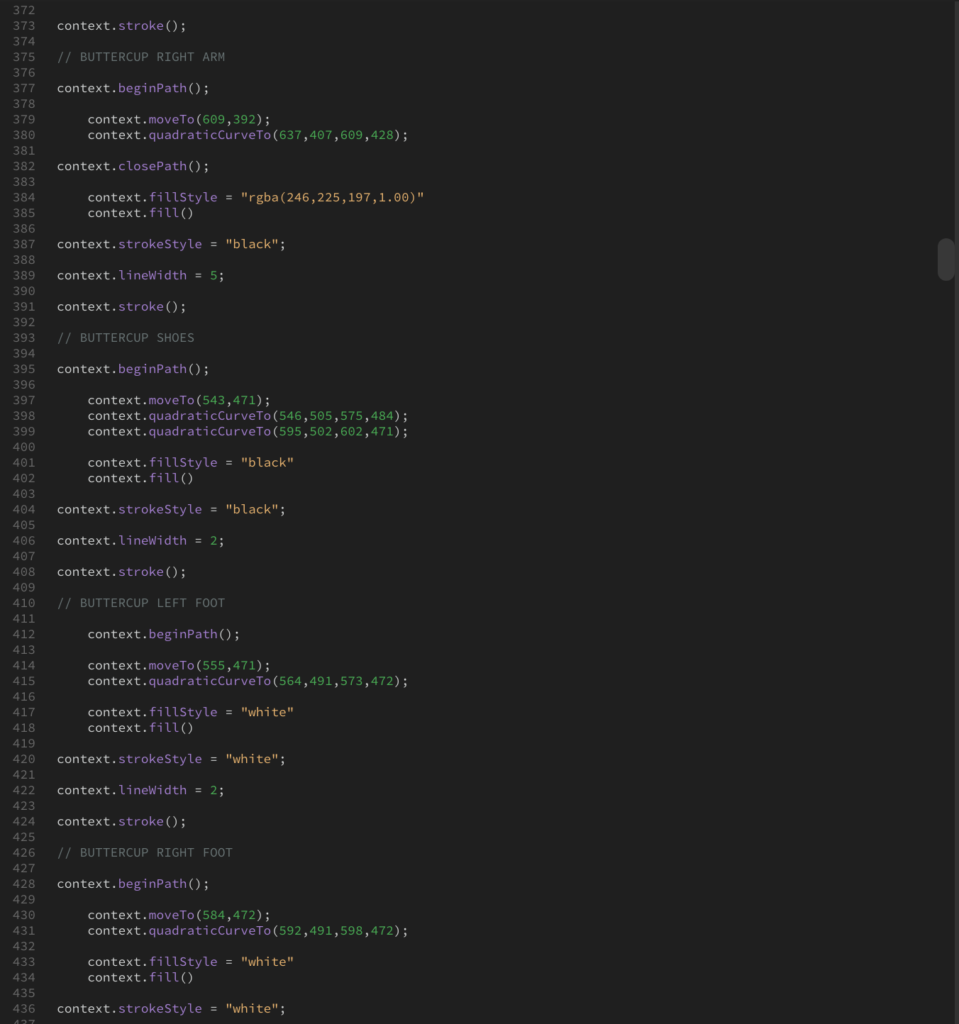 DESCRIPTION: Inspired by a PowerPuff Girls image, a duplicate image was created using bezier and quadratic curves.