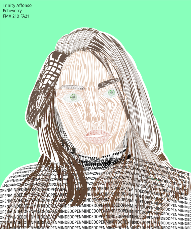 DESCRIPTION: A calligram made based off of a selfie, and the words used are from a letter written to myself for 20 years from now.