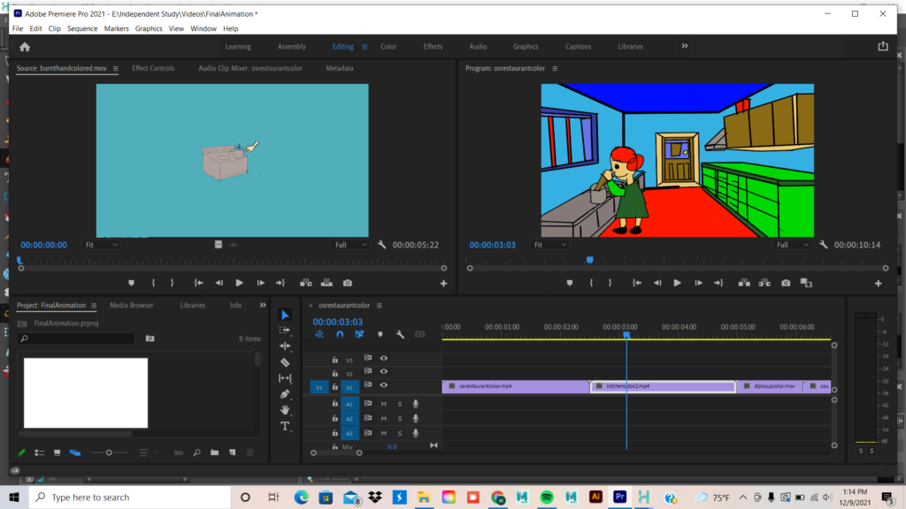 DESCRIPTION: Editing my scenes in premiere pro for the final product of my short film.