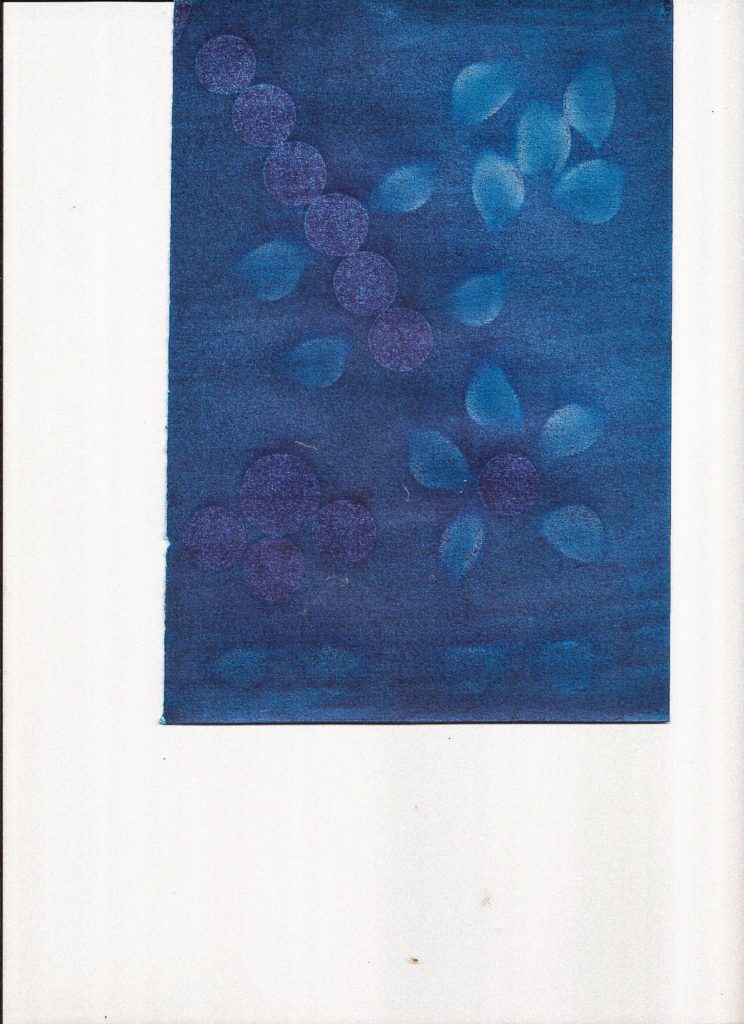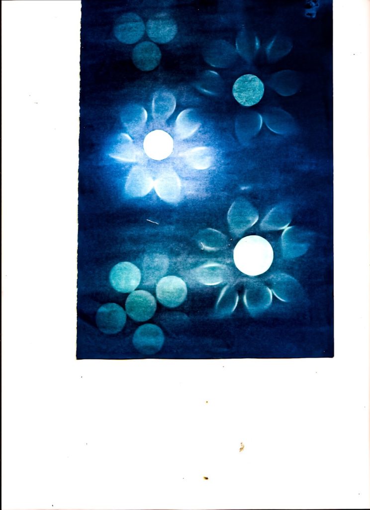 DESCRIPTION: This project involved using cyanotype paper and making cool designs and editing in Lightroom. I made pasta flowers by dipping the cyanotype paper in the sun with pasta on. Once the prints were created I dipped it in the water and let it dry for a couple hours. Once the paper dried up, I went into enhance it in Lightroom. It looks like the moon shining on the ocean on the beach.