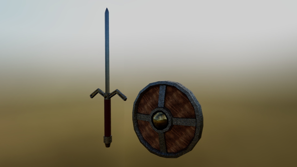 DESCRIPTION: For this assignment, I had to model a sword and shield using shapes and primitives. I encountered some struggles along the way, but after scraping the first attempt and starting again I finally got the output I wanted. The second part of this assignment was to texture them to make them look realistic. This was the easiest part for me and I am happy about how the textures turned out.