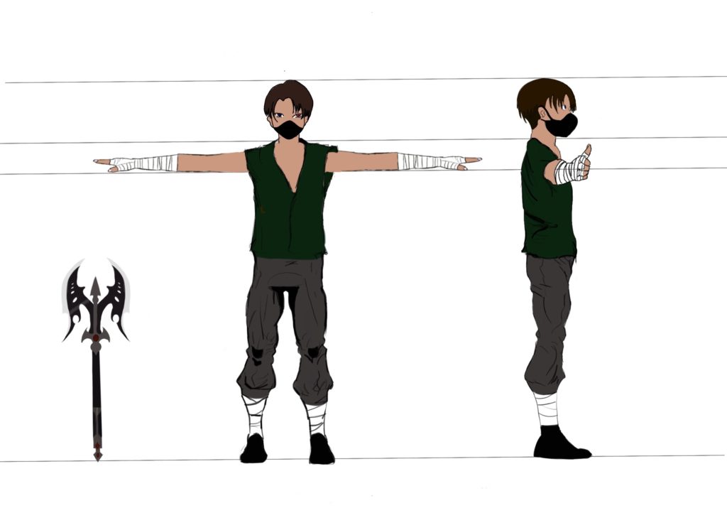 This is the character sheet of the main character is in the video gameOriginal basic model made in Maya Autodesk with axeOriginal dressed model made in Maya Autodesk with axeEnvironment created in Maya Autodesk