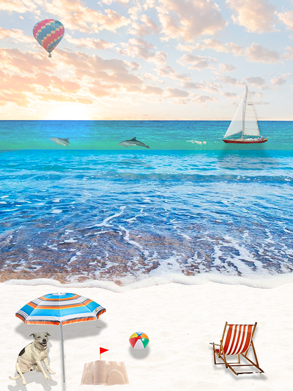 DESCRIPTION: This was meant to depict a day at the beach in Florida. I first started by creating the foreground, middle ground, and background. Then I added some elements in each to give the scene more life. What worked best for me was all the objects that are in the ocean. The hardest part was making everything in the sand look more realistic.