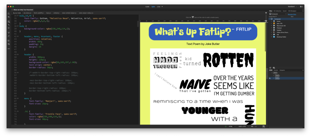 LINK: https://fmx311.santiago.bz/FMX311/FA19/butler/01_TextPoem/Whats%20Up%20Fatlip%20Text%20Poem.html