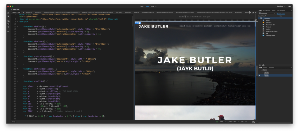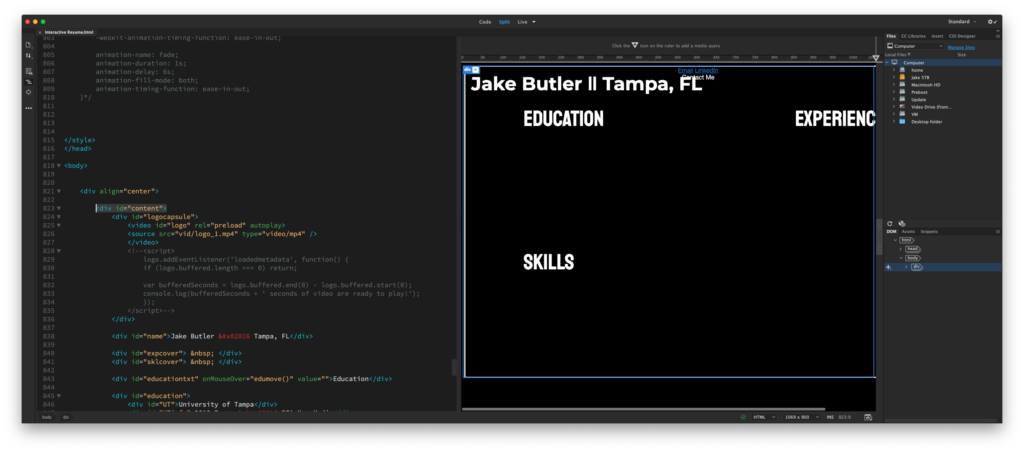 LINK: https://fmx311.santiago.bz/FMX311/FA19/butler/05_IntResume/Interactive%20Resume.html
