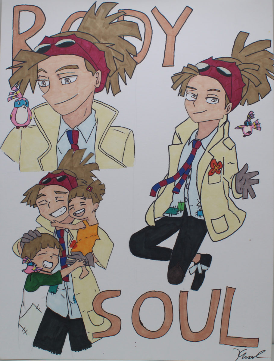 DESCRIPTION: A My Hero Academia Anime contribution drawing. A collage of different angles, and sizes of the character. Playful color and organized placements.