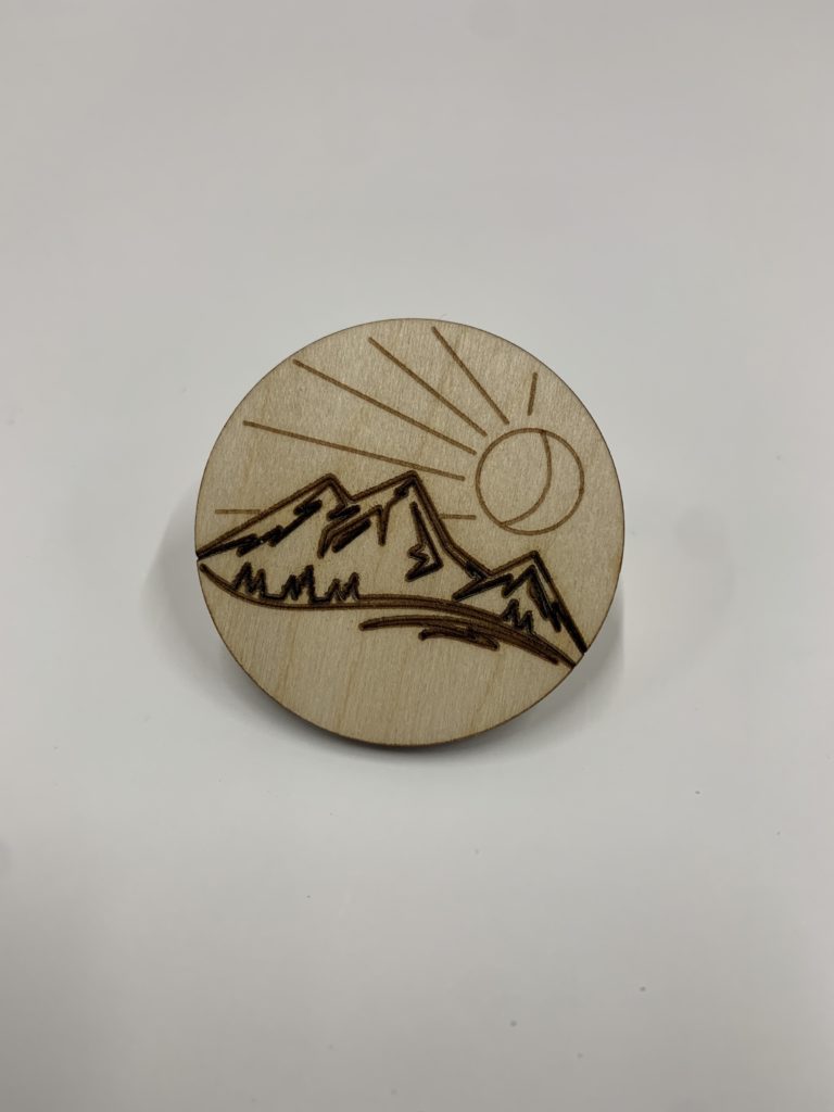 DESCRIPTION: A token with a mountain, sun, and moon vector engraved at different power levels.