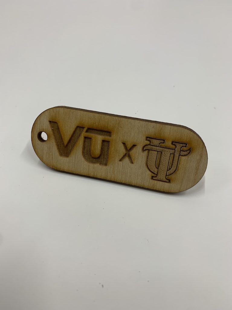 DESCRIPTION: Key chain designed for the collaboration between Vu and UT. These tags were offered in gift bags for the unveiling of our virtual production studio here at UT.