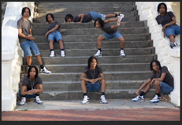DESCRIPTION: In this assignment, we used Photoshop to manipulate an image so that it seems that the subject is in multiple places at once. For the subject, I used my best friend and we took the photos over at the stairs in Plant Park.