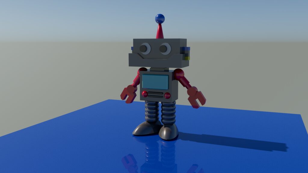 DESCRIPTION: This is a simple A position robot model I created in Autodesk Maya. However, this was the first time I started to create more detailed shapes in Maya. From the arms to the legs of the robot, I was able to create a more detailed design for my character.