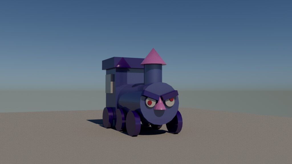 DESCRIPTION: This is the first model I designed in Autodesk Maya. Originally, this model was a regular toy train. However, I wanted to add more character to the model itself. After using the basic shapes to design the body of the train, I thought about what I could do to make this train into something more. By adding it’s angry face, it felt more like a fun toy to me. It also helped created the first steps into discovering what I can do with 3D Modeling.