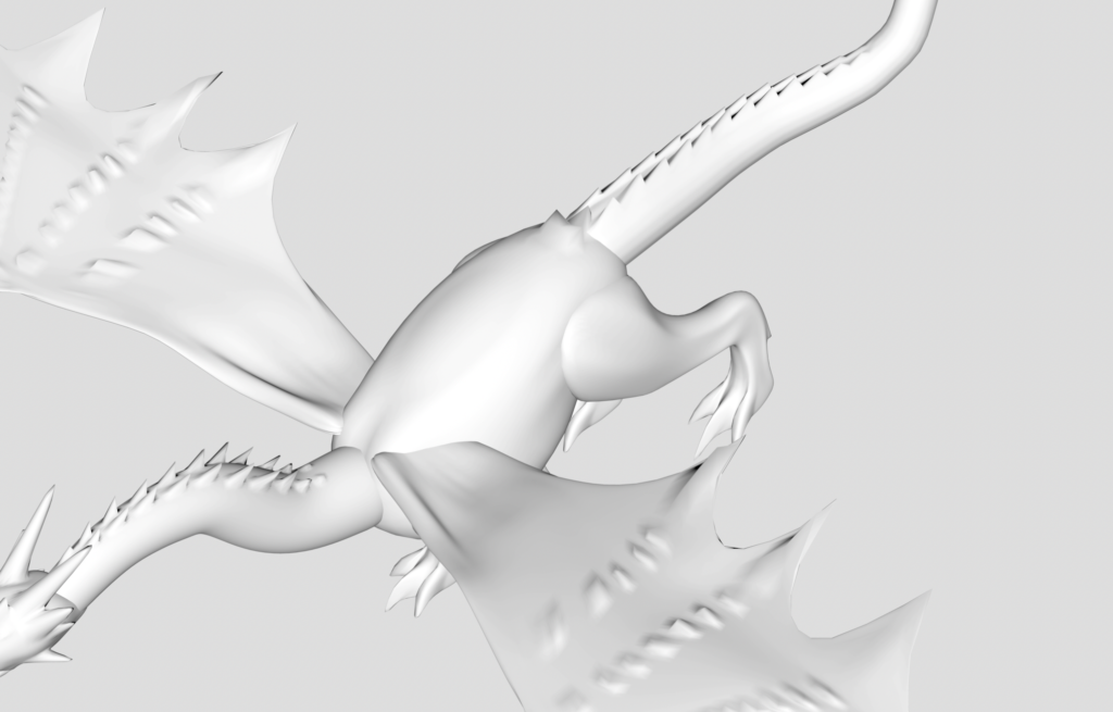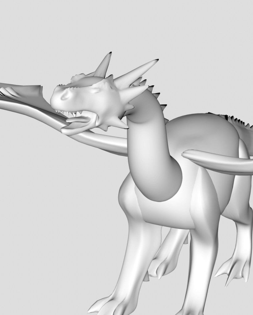 DESCRIPTION: I chose to add this dragon last because it was one of my first 3D models, and I wanted viewers to compare my latest dragon (the own shown above) with this one (hence the titles as well). This model is relatively simple, with separate meshes for the face, neck, body, wings, legs and tails. I primarily used the sculpting tool on Maya to give it some subtle details and textures.