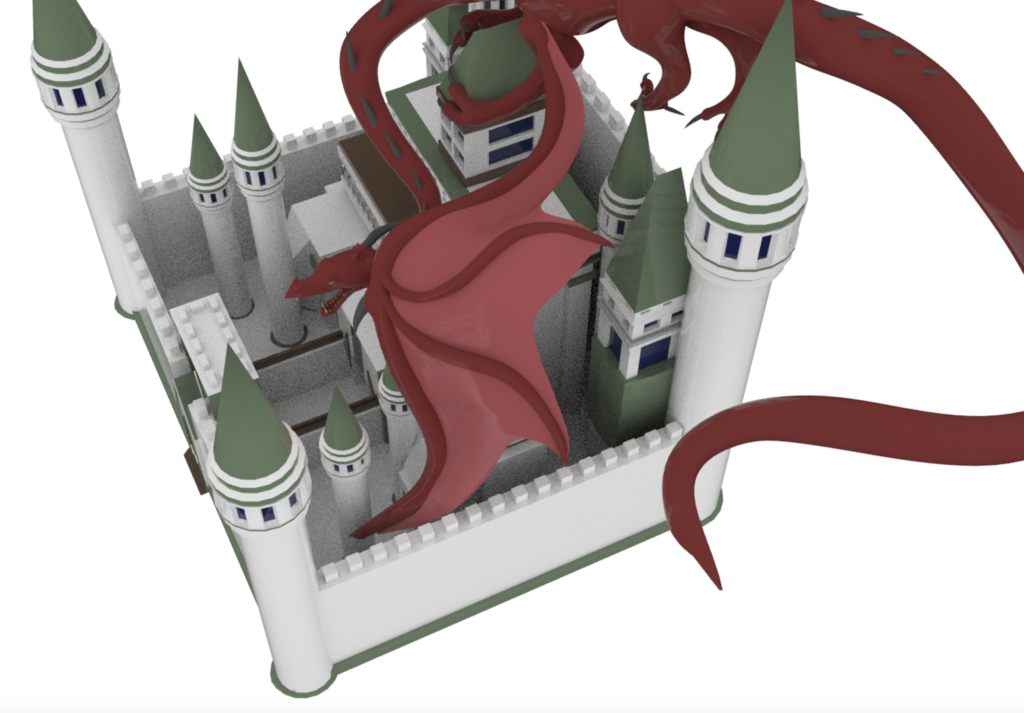 DESCRIPTION: I decided to to a life-like detailed dragon on a castle for my final project in my 3D Printing and Modeling II course. The show Game of Thrones is what originally inspired me to pursue animation, so I wanted to create something that would celebrate the show, but in my own creative way. I enjoyed modeling the dragon’s head the most, adding dozens of multiple meshes to create a realistic, fear-provoking dragon.