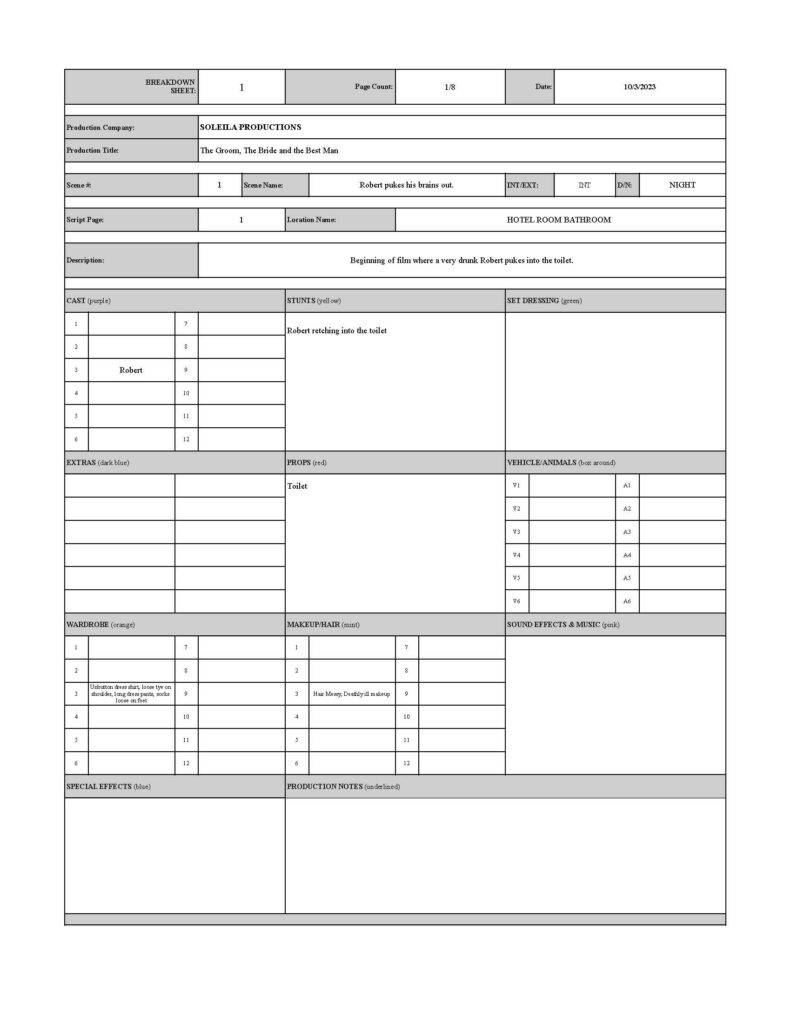 Animatic from storyboards of whole sequence. A party of drunken groomsmen all at their hotel celebrate their Groom’s last night of “freedom.” It all goes horribly wrong once they find him in a heap on the bathroom floor. In a panic they find the next best solution, and their new groomsman.