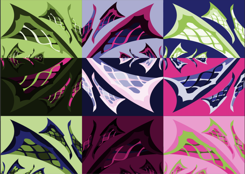 We worked a great deal with color pallets and had to choose either an analogous, triyadic or monochrome color scheme. Then using a pattern of our choice, replicate it with variations of our color scheme into a wall pattern.