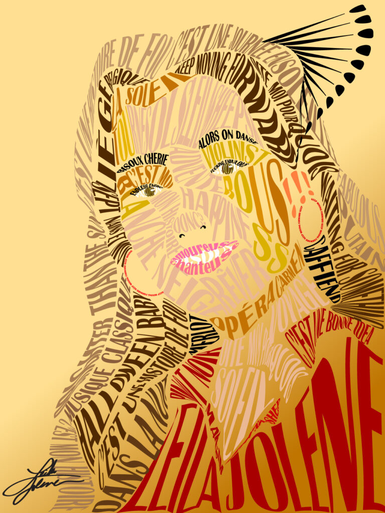 A calligram made up of the different french and english words & phrases that best describe myself.