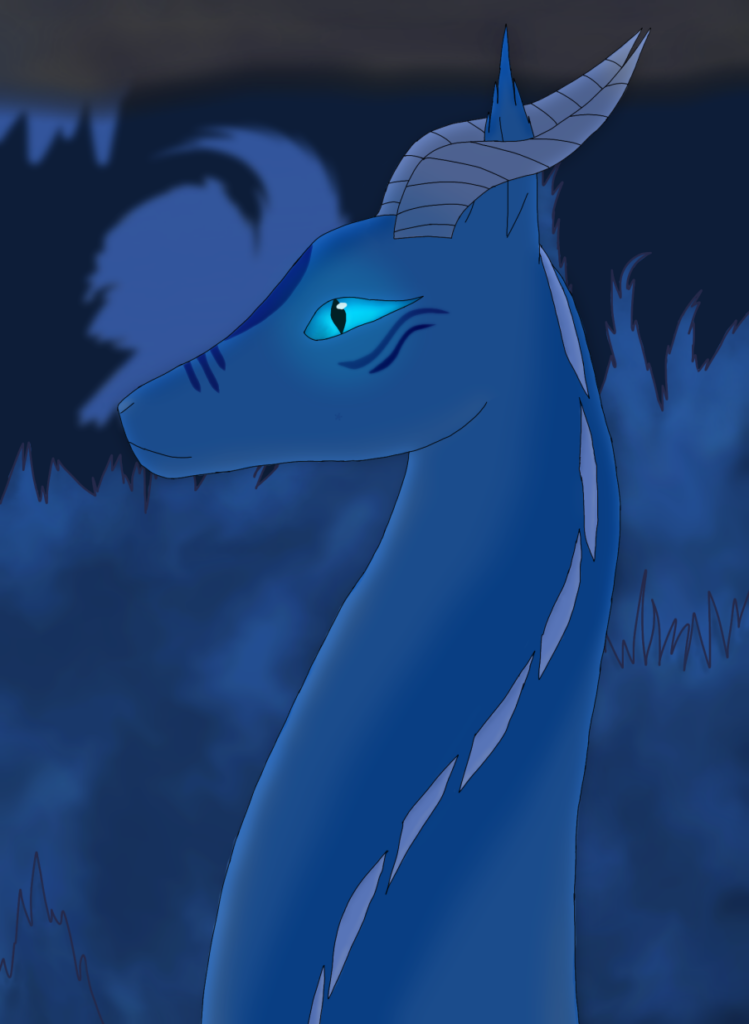 DESCRIPTION: This is a drawing of a dragon I created. I first sketched out the dragon on paper then retraced it in Ibispaint I then added the color and shading before adding in the background.