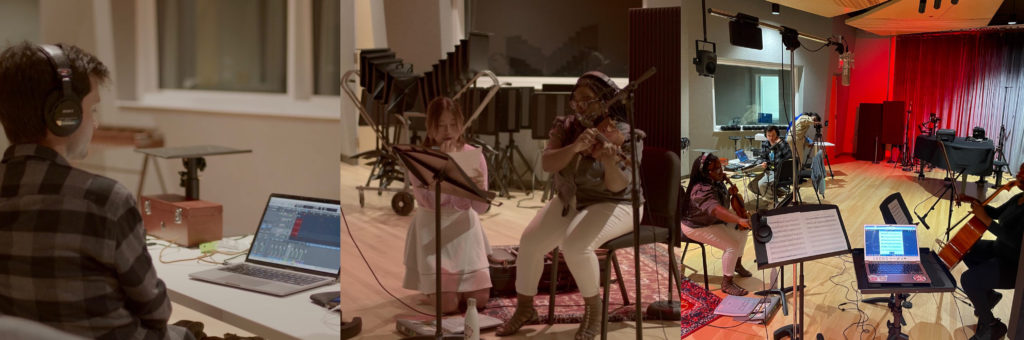I put together a team of five musicians (Dallis Williams, Tiffan Eady, Jude Lucas, Dallas Clark) including myself to play the soundtrack. I was very fortunate to also be a music student and could utilize the two sound studios in both the film and music buildings. I translated the initial demo tracks I made with Apple Logic Pro into sheet music, distributed to my musicians, and scheduled two recording sessions.