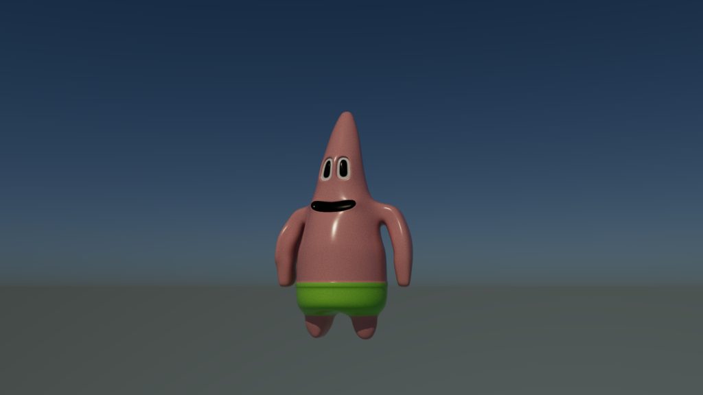DESCRIPTION: This project was to create any simple character. I modelled Patrick Star, this project was more difficult since I was modelling an organic character. The textures for this model are simple materials from Maya.