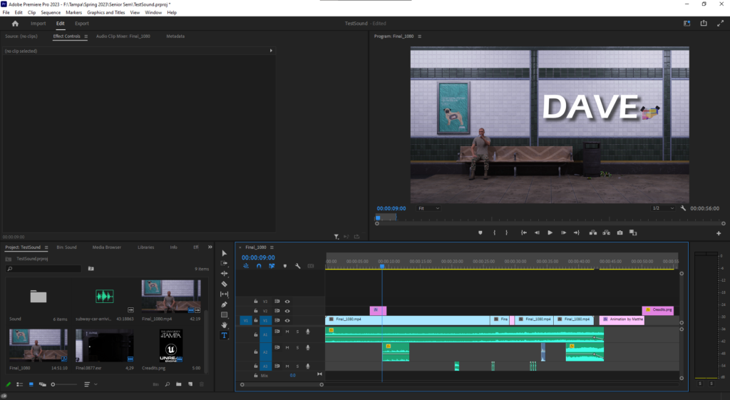 After rendering out the final animation from Unreal I brought the footage into Premiere Pro to add sound and title sequences.