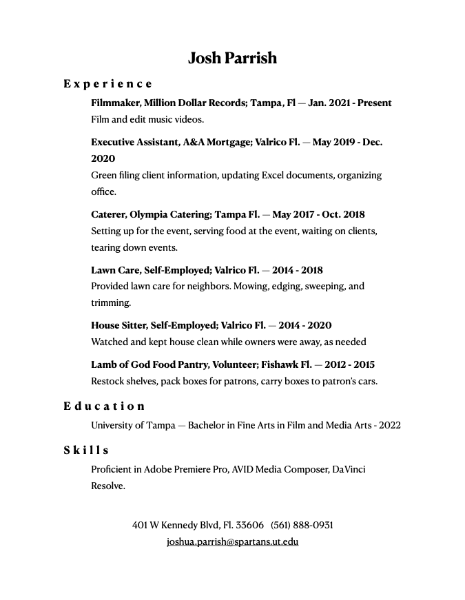Josh parrish's FMX ACADEMIC PORTFOLIO