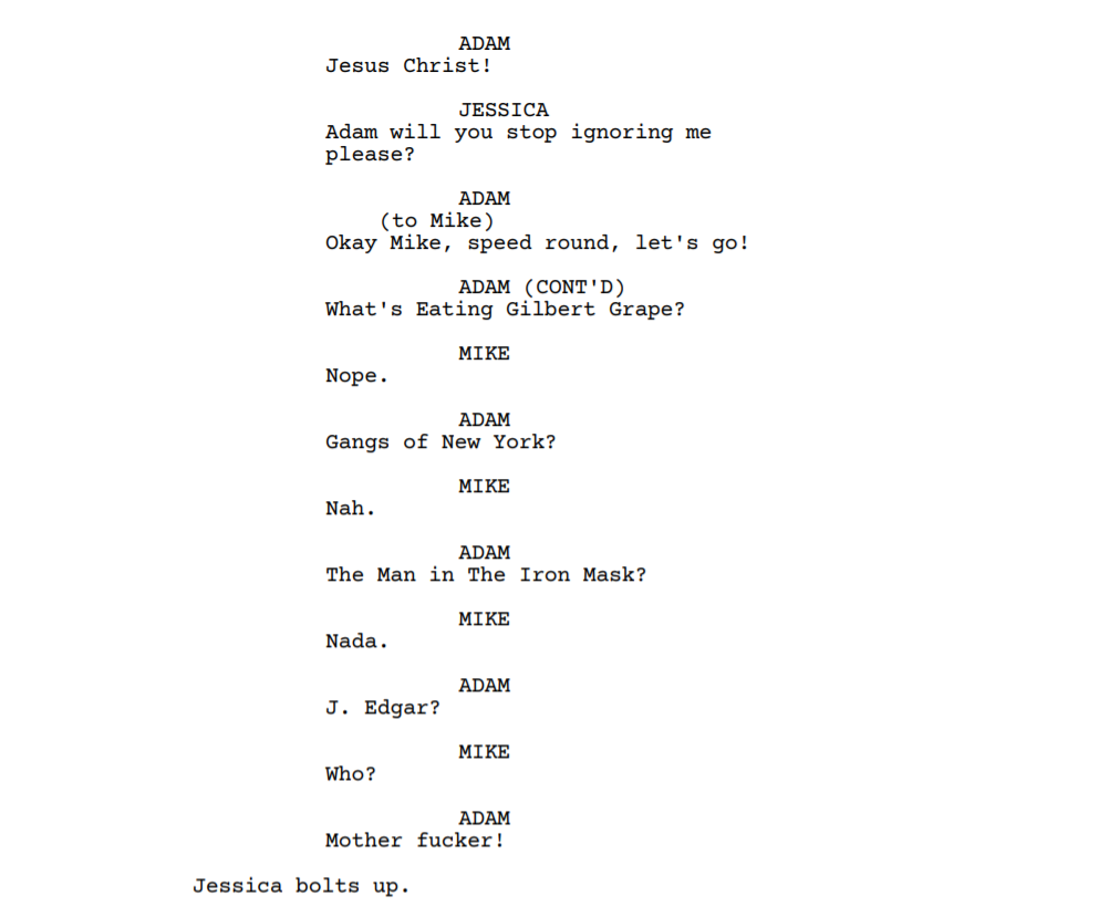 Game Night is a short film I wrote about two conversations going on at once. One is a girlfriend trying to inform her boyfriend she is pregnant while the boyfriend is preoccupied with trying to figure out the movie his friend had watched the night before.