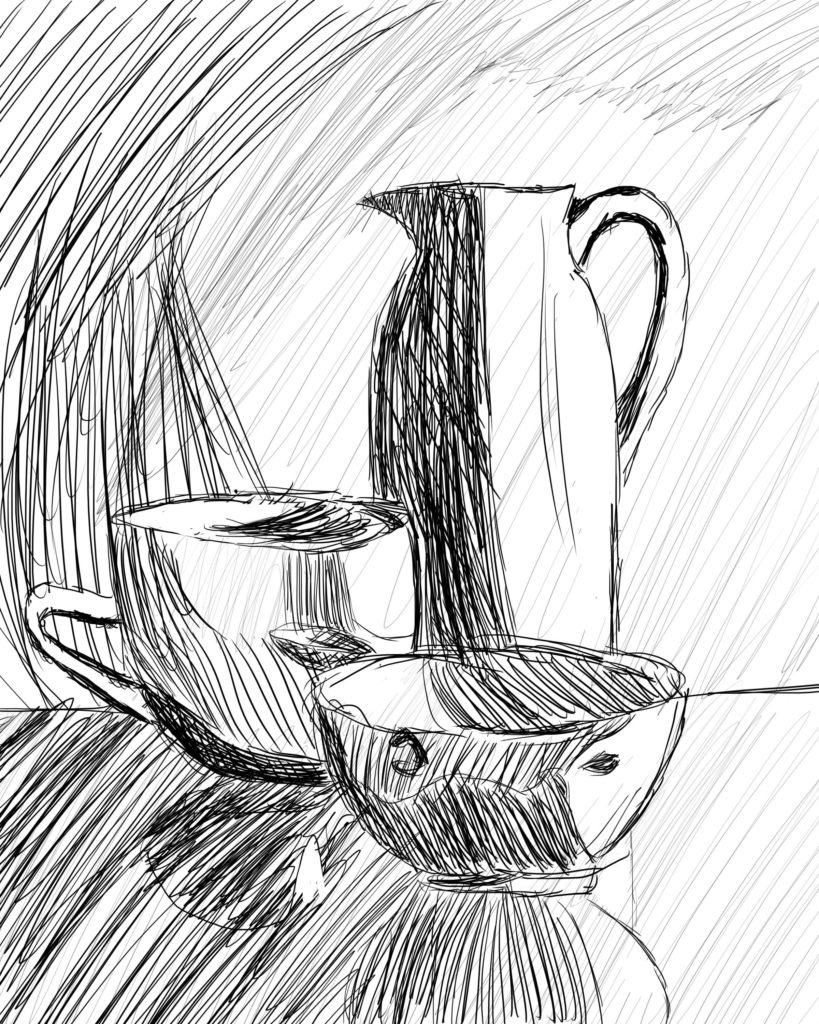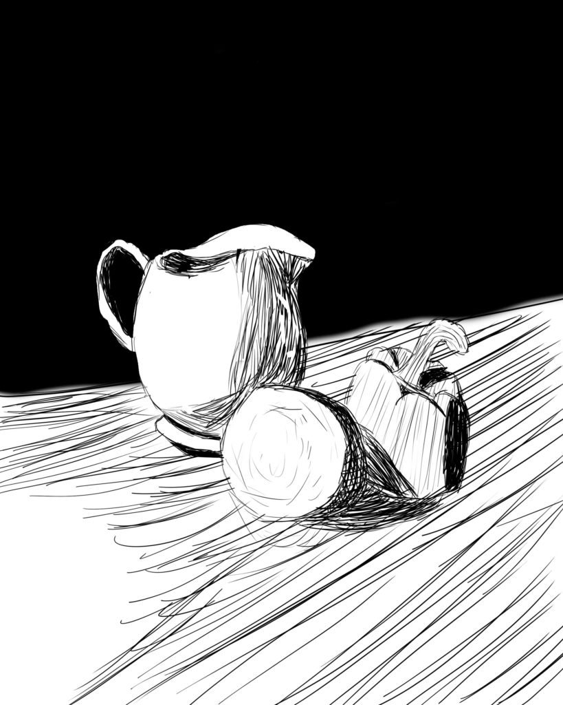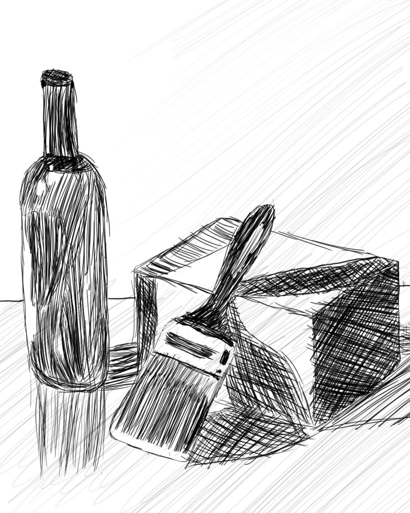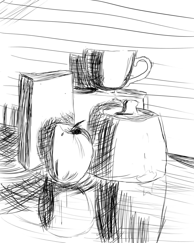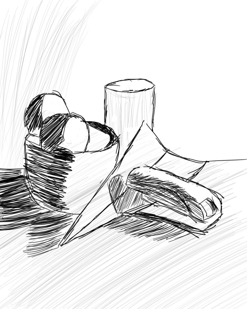 DESCRIPTION: Had to sketch with crosshatches, a large amount of objects real or from online.