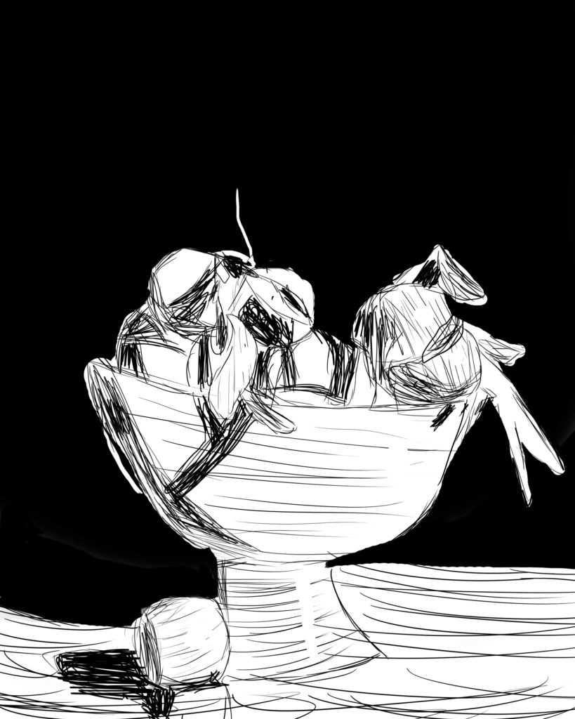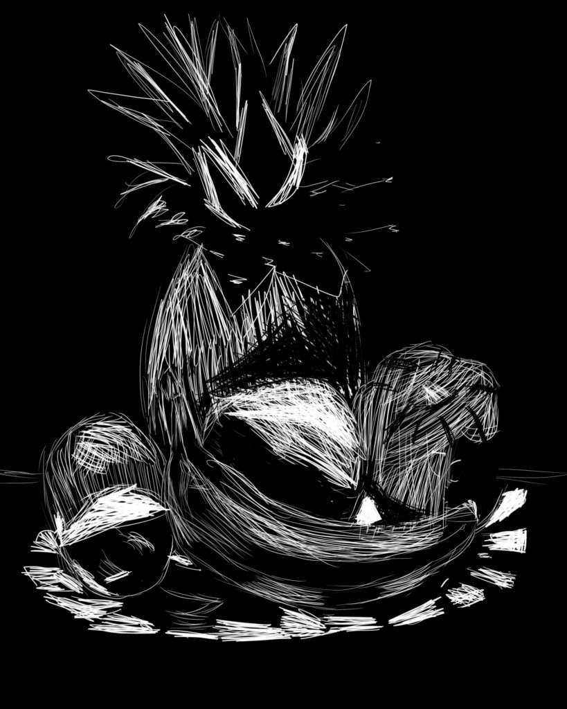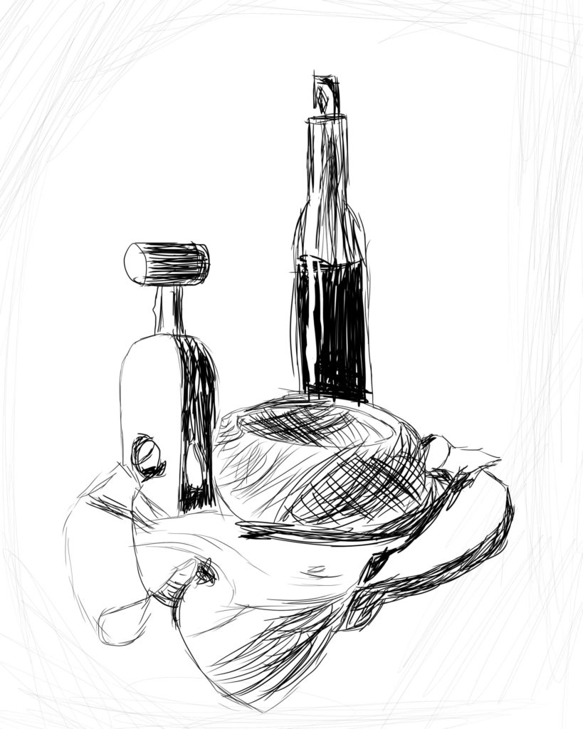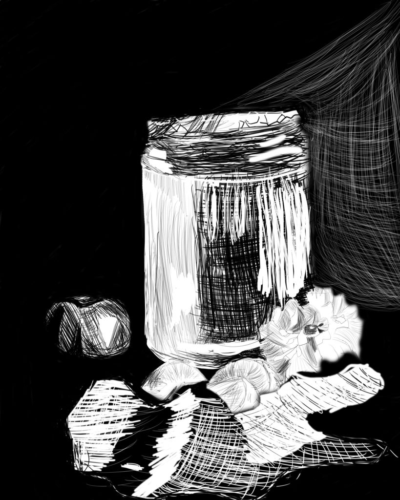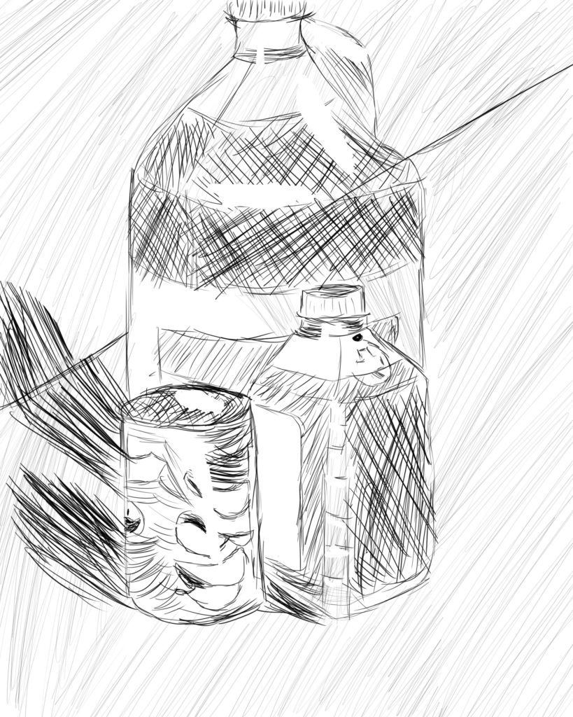 DESCRIPTION: Had to sketch with crosshatches, a large amount of objects real or from online.