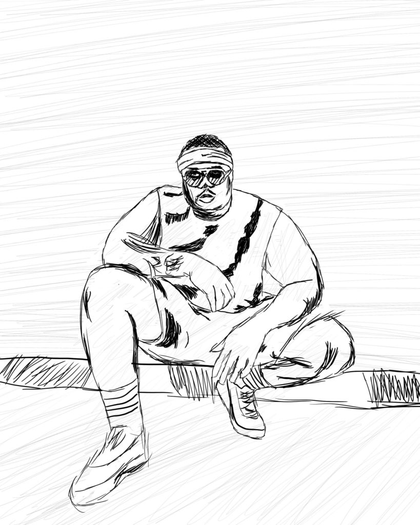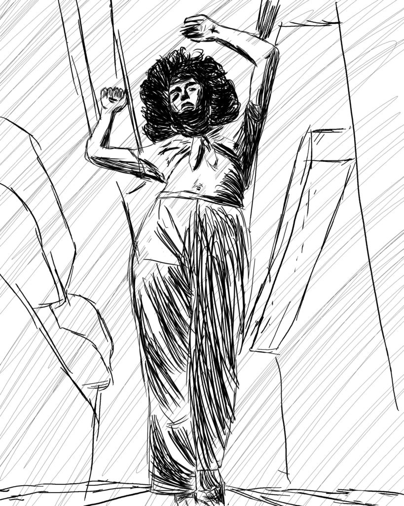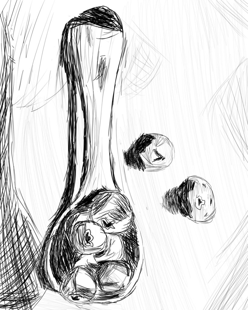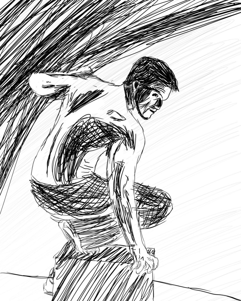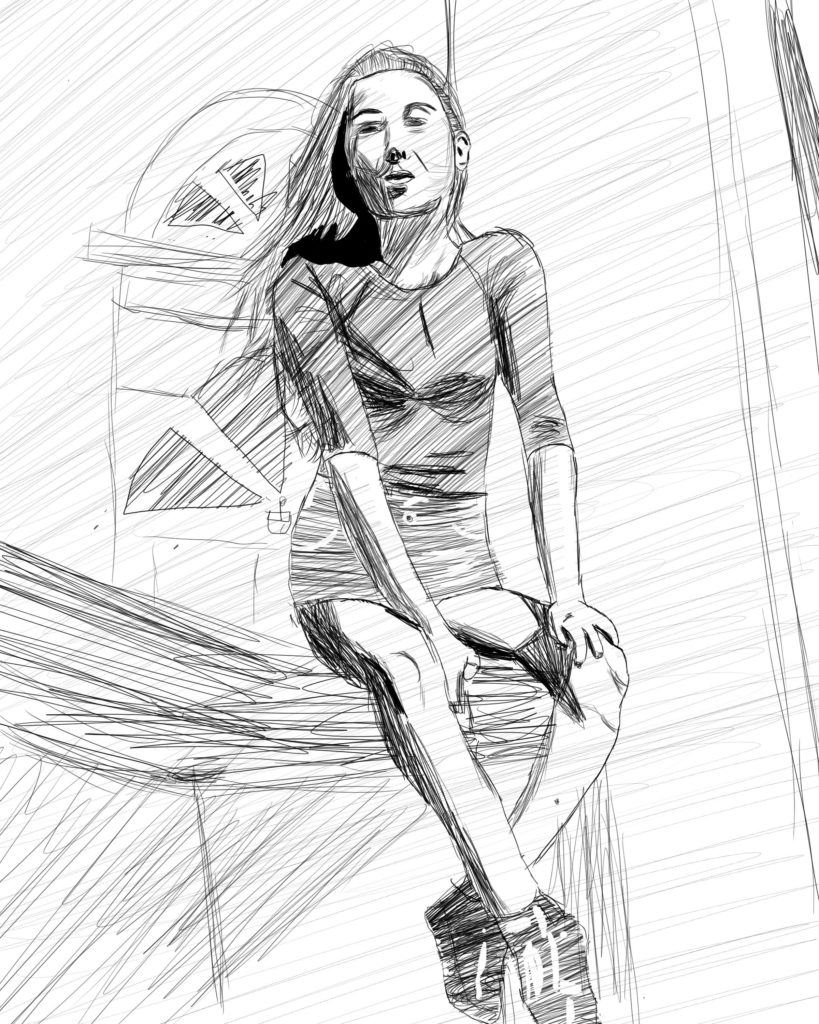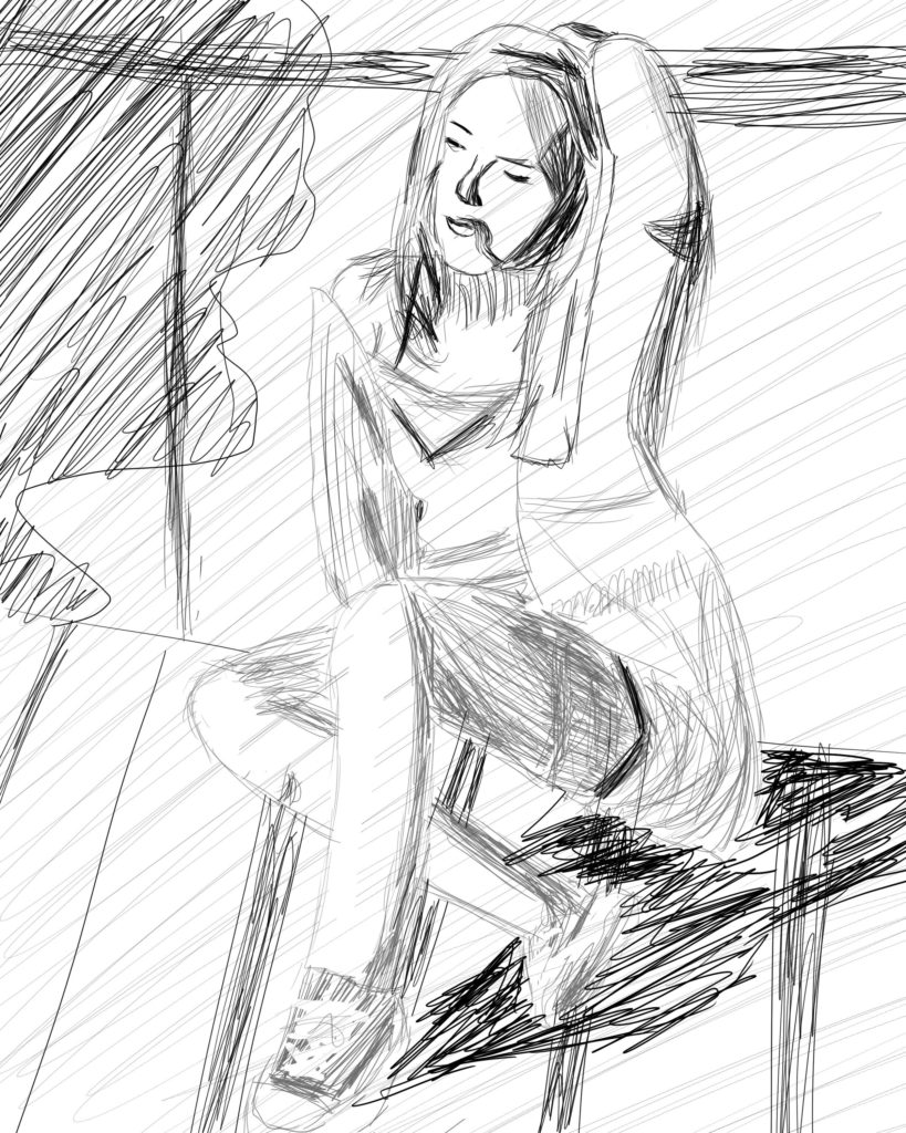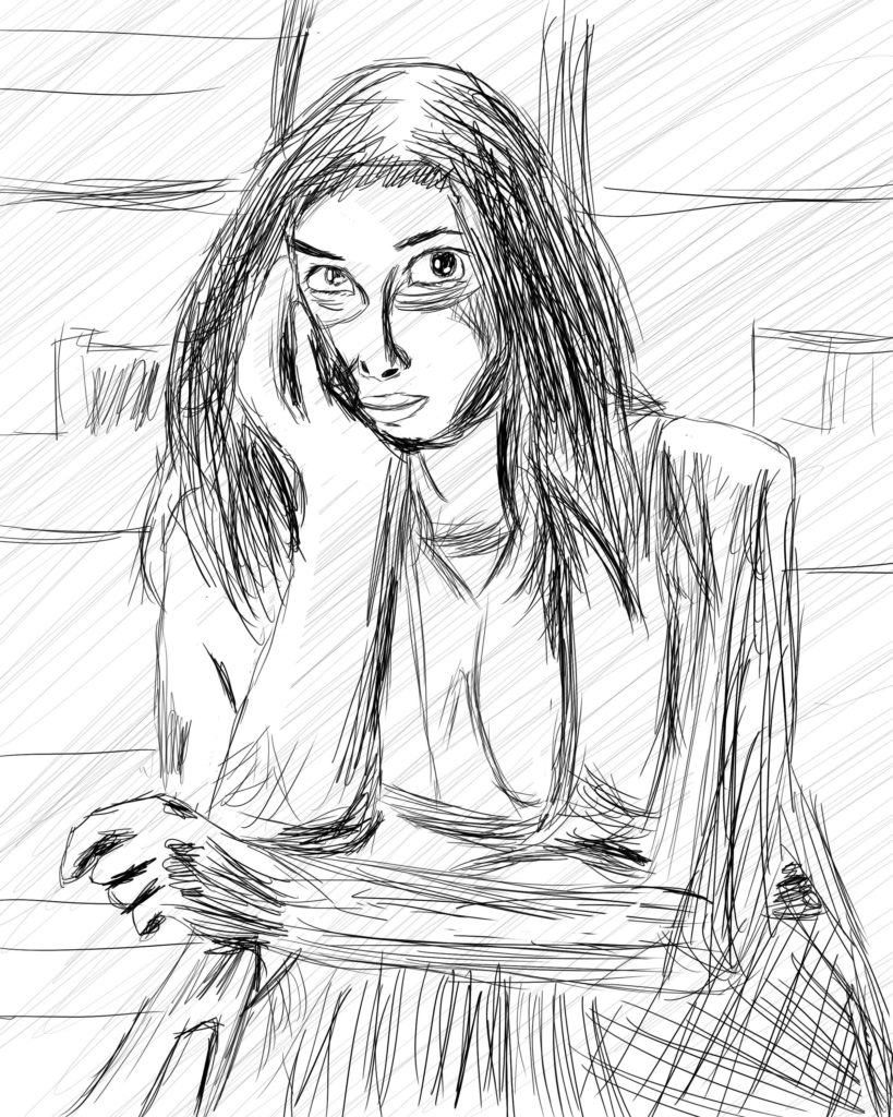 DESCRIPTION: Also had to draw a large amount of people with crosshatches.