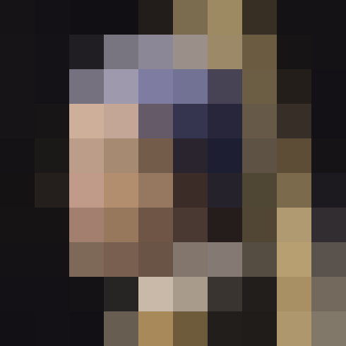 DESCRIPTION: A pixelized version of Vermeer’s iconic painting, “Girl with a Pear Earring.” Inspired by the work of Joseph Francis.
