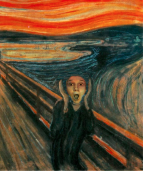DESCRIPTION: For this project, I was required to take a famous piece of artwork and make it my own. I wanted to make it different and funny, and create something no one else had done! So, I took The Scream and put my face in it!