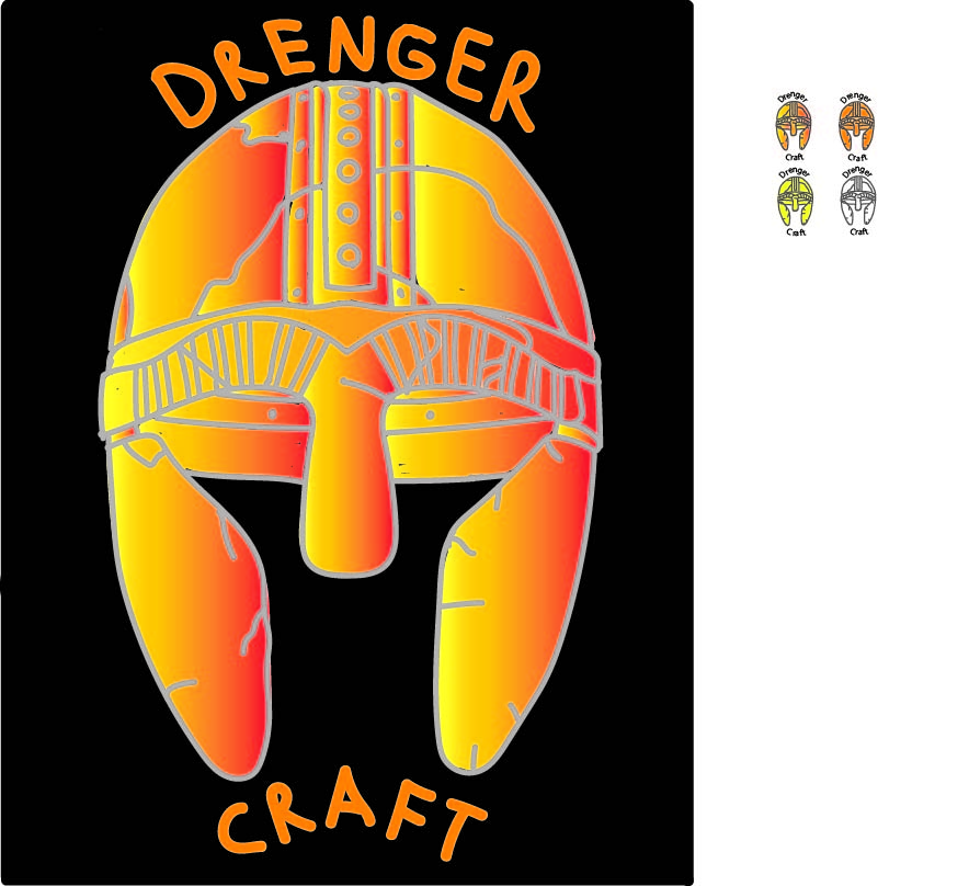 DESCRIPTION: This was a drawing of a logo to brand ourselves design using only the paintbrush tool. I chose at the time to make a Nordic helmet and label it Drenger Craft because Drenger means Norse in old Skaldic, a dead Nordic language. I also drew up smaller versions for variations of a simpler rendition than the original.