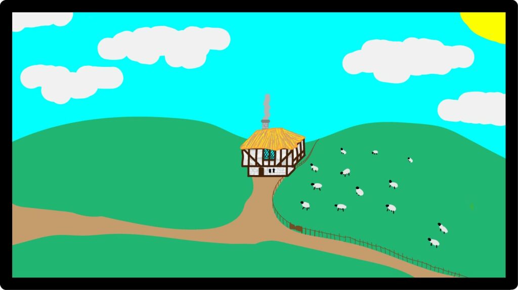 DESCRIPTION: This was a drawing of a medieval cottage using only the paintbrush tool.
