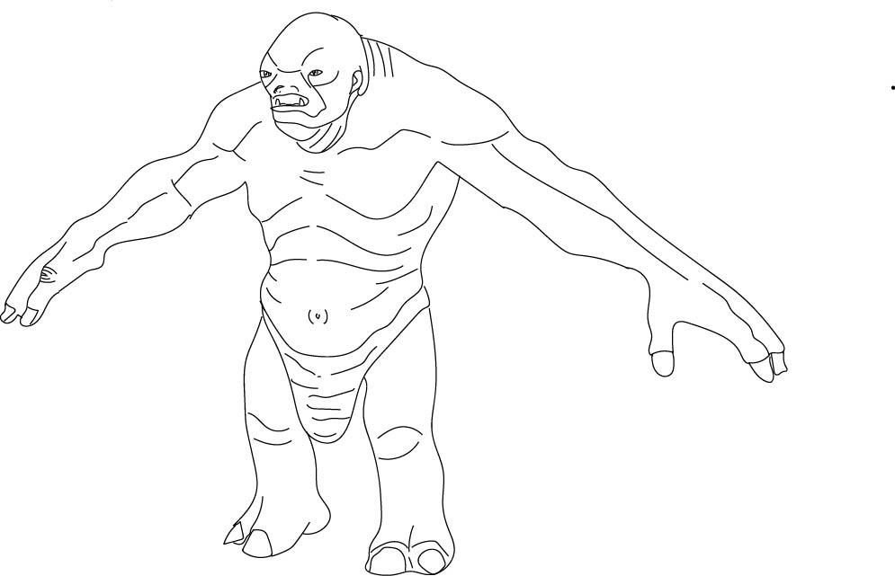DESCRIPTION: This was a drawing of a troll from Lord of the Rings using only the paintbrush tool. I was tasked with doing a full body pose. I also traced an outline for this character before applying details.