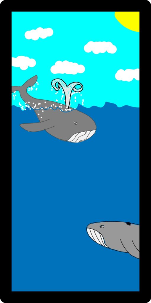 DESCRIPTION: This was a drawing of two whales using only the paintbrush tool. The shape of the canvas was to resemble an iphone screen.
