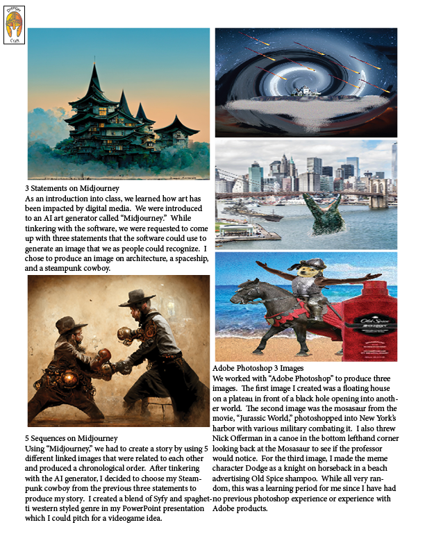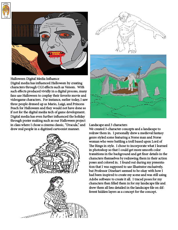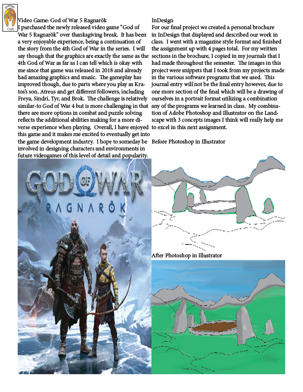 DESCRIPTION: This was an overview of my semester in FMX 210 Digital Media. It was created to look like a magazine.