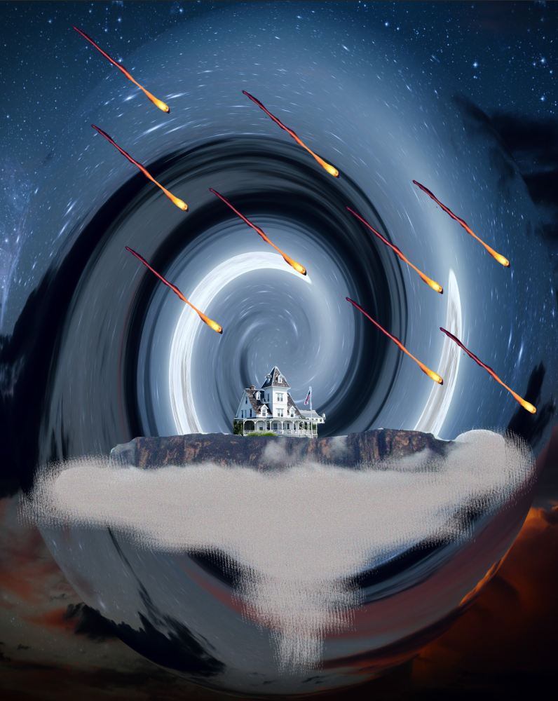 DESCRIPTION: This was my second Photoshop assignment where I made a floating house in space with a meteor shower in the background. I also played with the Twirl modifier to get the swirling background.