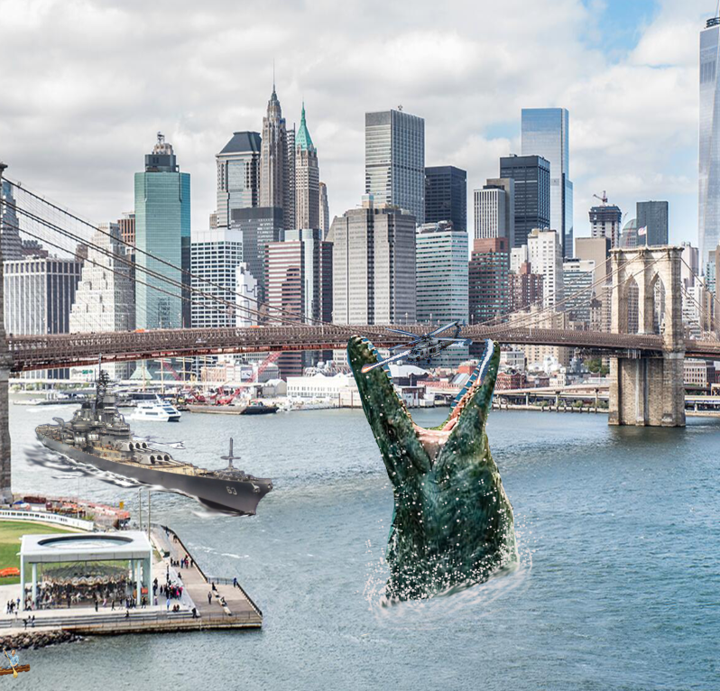 DESCRIPTION: This was my fifth Photoshop assignment where I decided to make the New York harbor look like it was being terrorized by the mosasaur from Jurassic World.