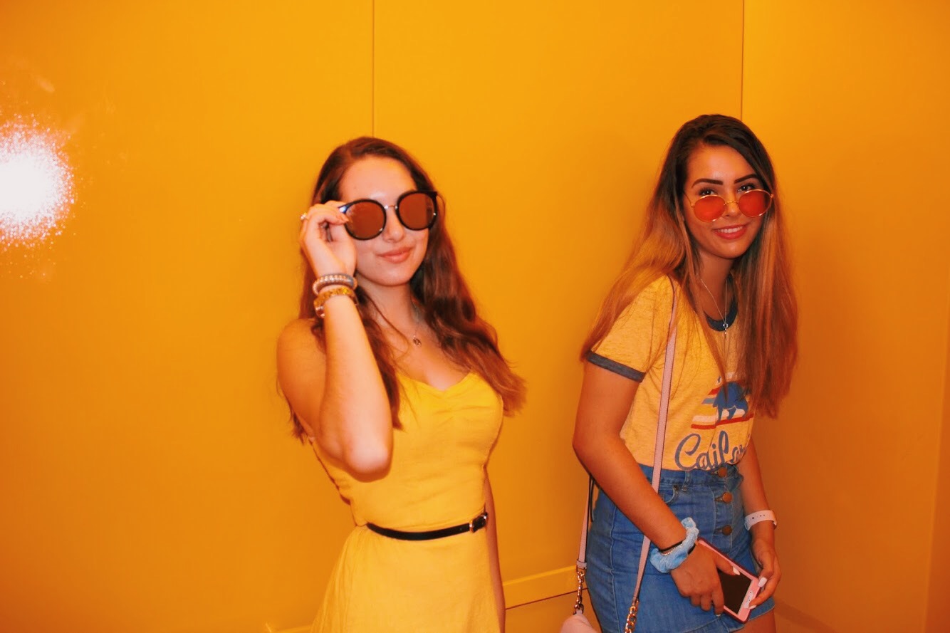 DESCRIPTION: Photos taken at the Tampa Museum of Art of Gaby and Mariana. These pieces were done on a whim, I noticed that they were both wearing yellow which went with the colors inside of the elevator amazingly. I gave Gaby (second photo, on the right) my red sunglasses to keep the warmness of the composition. I increased the saturation and edited the photos in Adobe Photoshop and again in VSCO.