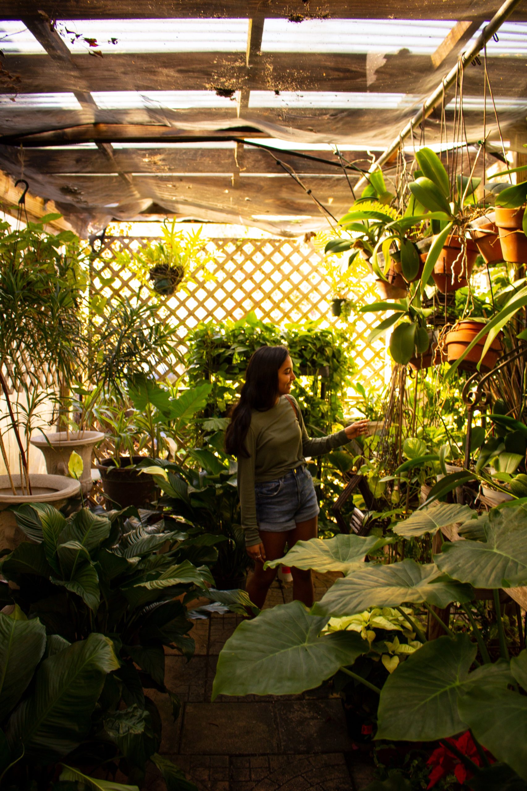 DESCRIPTION: Portrait of Astha surrounded by plants in a nursery. I spontaneously took this photo candidly while we were catching up at one of our favorite places. We’d been coming here for years, and I decided to capture the moment of her inspecting plants. What makes this composition work is the colors all coming together with her outfit, along with the warmness of the photo rising up. This is one of my favorite photos that I’ve taken.