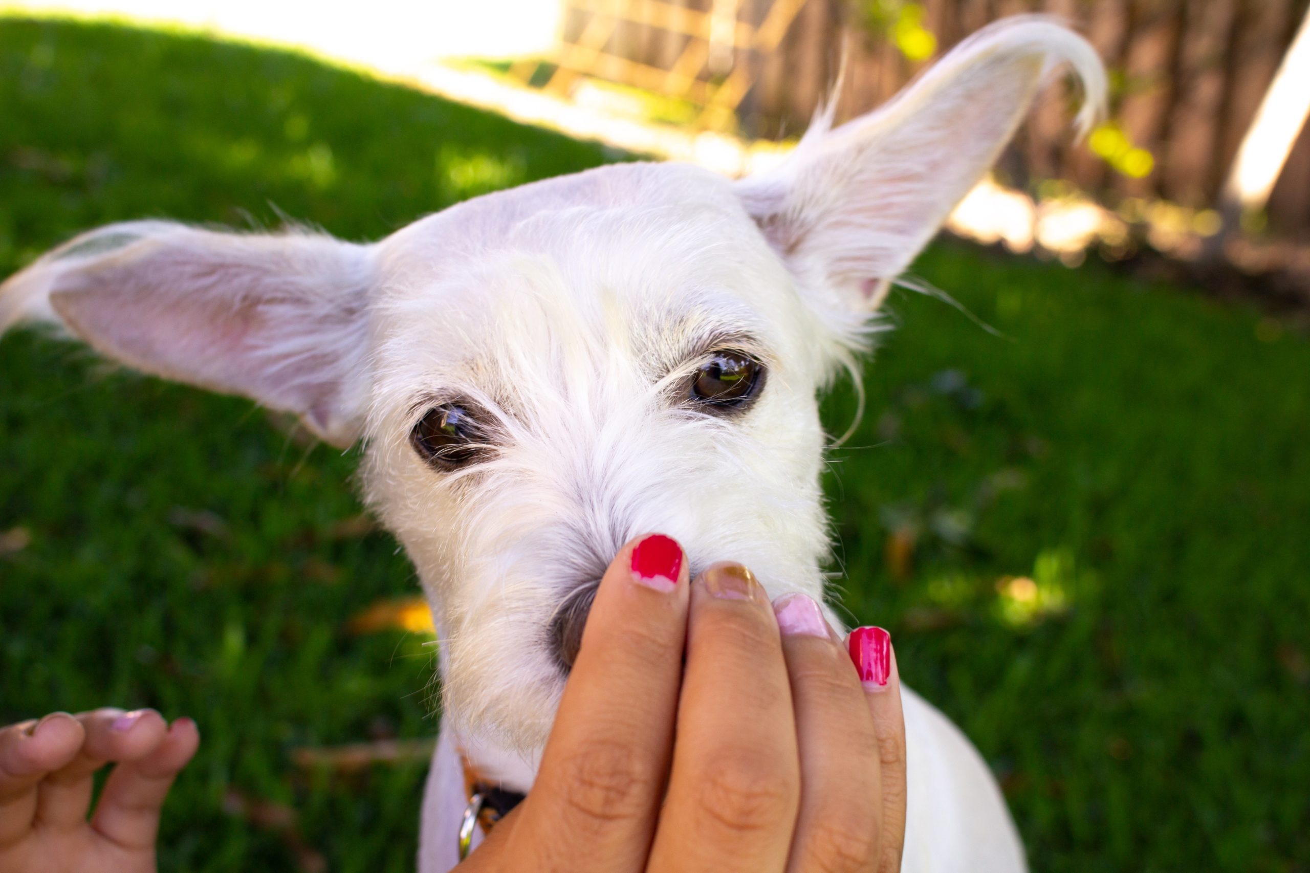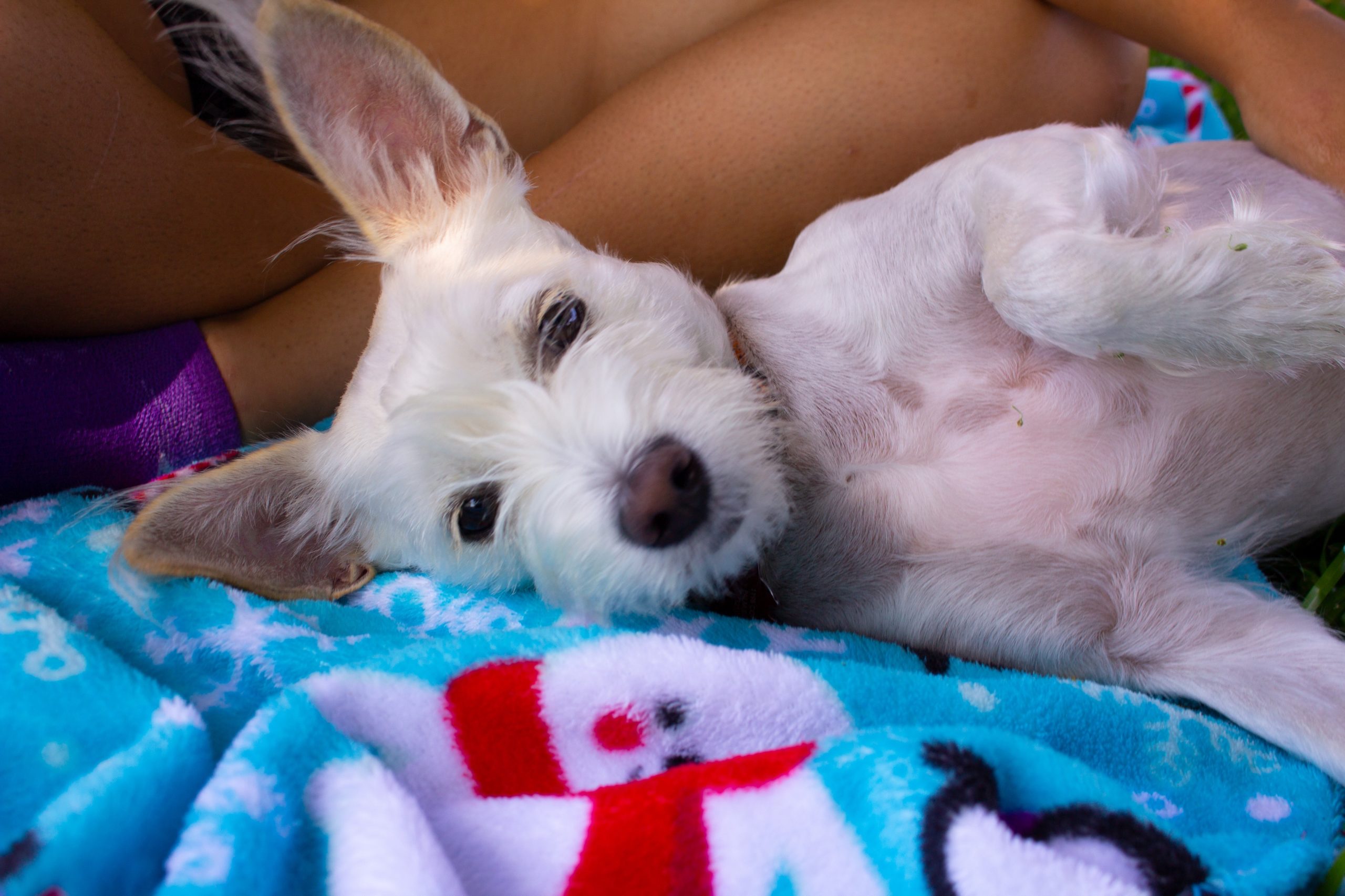 DESCRIPTION: Portraits I took of my dog, Yogurt outside. I had her lie down and bribed her with something behind the camera to sit still. I positioned her around my sister to capture the shots.